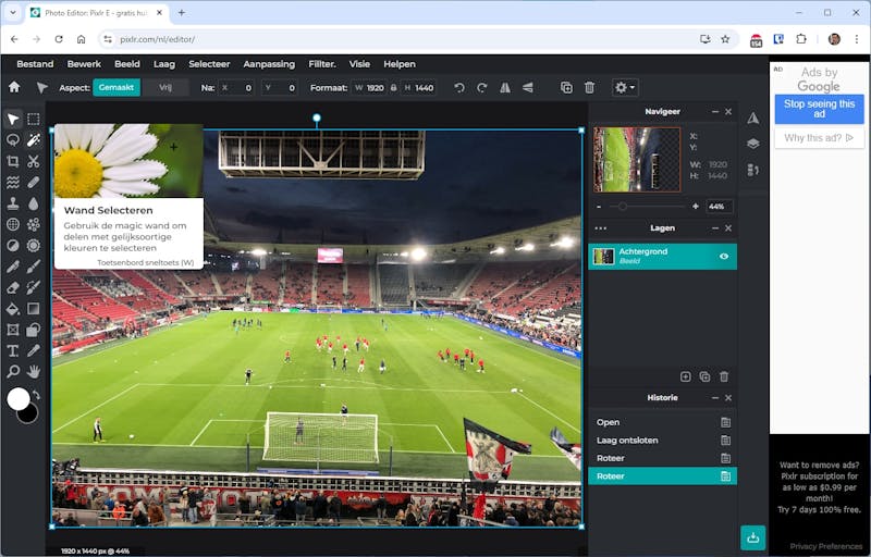 Even een horizon rechtzetten, het contrast wijzigen of een uitsnede maken? Bij Pixlr Editor ben je voor eenvoudige correcties aan het juiste adres. Zodra je een lokaal fotobestand selecteert, verschijnt er een uitgebreid bewerkvenster. Gebruik de gereedschappen aan de linkerkant om bijvoorbeeld een object te selecteren of kleurverzadiging toe te passen. Bovenaan verschijnt een werkbalk waar je de waarden naar eigen wens wijzigt. Een nuttige optie is dat Pixlr Editor het gebruik van lagen ondersteunt. Kortom, een absolute aanrader!